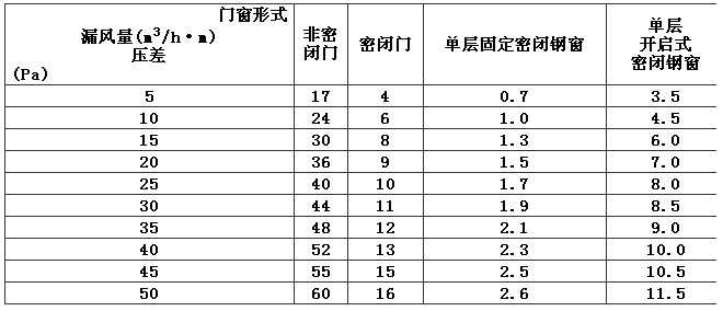 單位長度縫隙滲漏空氣量用公式計算是比較困難的,一般是通過不同形式的門、窗進行多次試驗的數據統計后得出的。表7是對國內潔凈室的20多種常用的門、窗在實驗室進行了大量的試驗后取得的數據,雖然近年來潔凈室門窗的材料和形式有很大的發展,但目前還有部分潔凈室仍然采用鋼制密封門窗,故表7中的數據仍可供設計時參考。