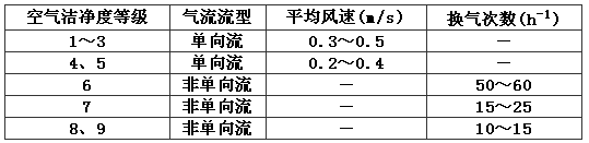 注:1 換氣次數適用于層高小于4.0m的潔凈室;