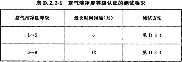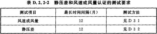 D.2.2 空氣潔凈度等級、靜壓差、風(fēng)速或風(fēng)量的認證測試的最長時間間隔應(yīng)符合表D.2.2—1和表D.2.2—2的規(guī)定。