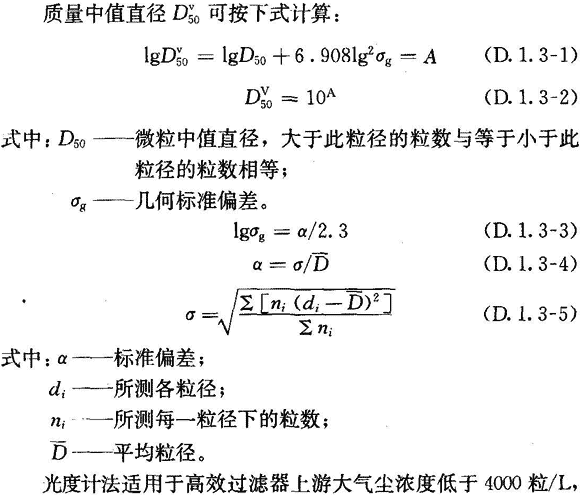 D.1.3 光度計法可用于最大穿透率大于等于0.001%的過濾器檢漏,應(yīng)采用多分散的檢漏氣溶膠,其質(zhì)量中值直徑為0.5μm~0.7μm,幾何標(biāo)準(zhǔn)偏差約為1.7。