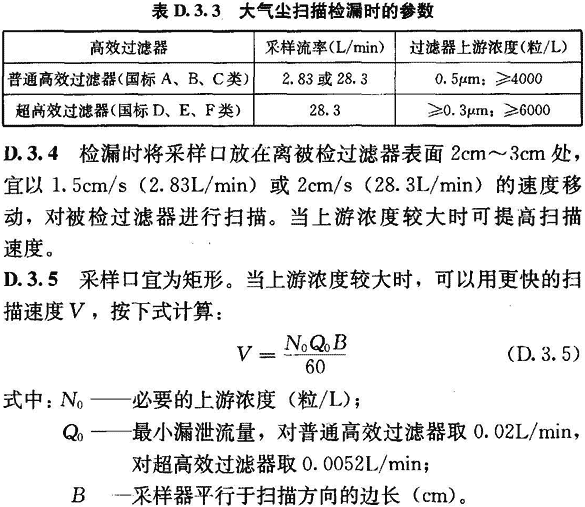 D.3.7 掃描檢漏時應(yīng)拆去高效過濾器外的孔板或裝飾層,掃描面積應(yīng)稍有搭接。