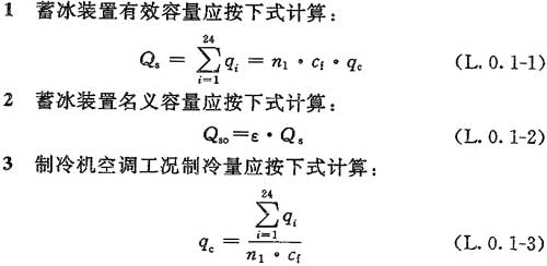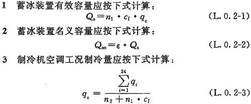 L.0.1 蓄冰裝置容量與雙工況制冷機空調工況制冷量計算應符合下列規定:
