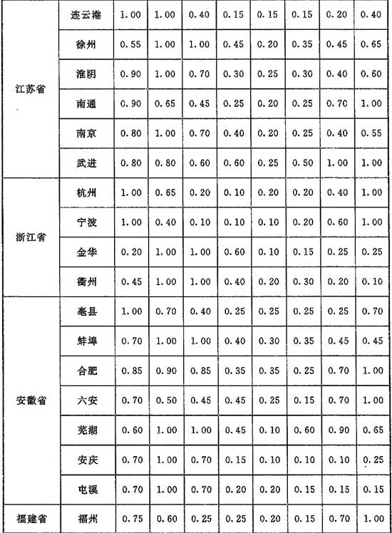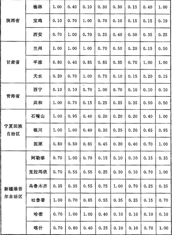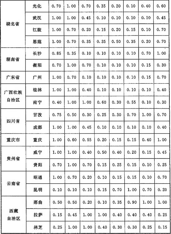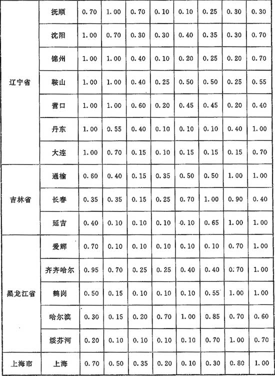 G.0.1 計算供暖熱負荷時,單純風壓作用下滲透冷空氣量的朝向修正系數應按表G.0.1采用。