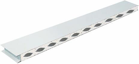 機制硫氧鎂夾芯板采用硫氧鎂為芯材,鍍鋅或彩涂板為面層(兩層)及高強度粘劑,通過高速連續自動化成型機加溫、加壓復合,經過修邊、開槽、下料而成的新一代建筑裝潢板材。具有防火性能強、硫氧鎂彩鋼夾芯板憎水率大于98%,遇水不發生變形和化學反應,強度高夾芯板長度可達到10m承受兩個成年人踩踏,保溫隔音效果好。